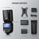 - High Capacity & Fast Recycling- The 7.4V 2600mAh lithium battery (NB-Z1) has a full charge time of about 2 hours and 15 minutes and can provide 480 full power flashes with a 1.5s fast recycling time. The flash duration is between 1/180s and 1/20000s, ensuring an enhanced shooting experience