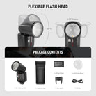 - Magnetic Dome Diffuser & Flexible Angles- The 76Ws speedlight features a circular Fresnel flash head, aided by the included magnetic dome diffuser, ensuring even, soft, and natural light effects with 5600K (±200K) stable color temperature. The flash head allows for 0-330° swivel and -7-120° tilt, and automatically or manually adjusts the flash coverage for lenses between 28-105mm. Two upgraded 2W 3300K LED modeling lamps (one below the flash head) offer 10 brightness levels (01-10)