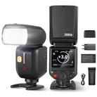 - New UI/TCM Switch/Flexible Head- The HD LCD screen and new UI make the operation a breeze. Convert between i-TTL and M modes with the TCM switch for precise flash metering. The powerful LED modeling lamp features 10 dimming levels for accurate flash preview. The flash head can tilt -7°-120° and turn 0°-330° for flexible flash bouncing