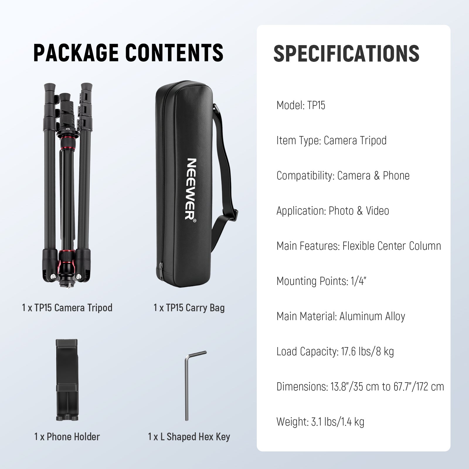 NEEWER BASICS TP12 66.5" Aluminum Alloy Travel Tripod