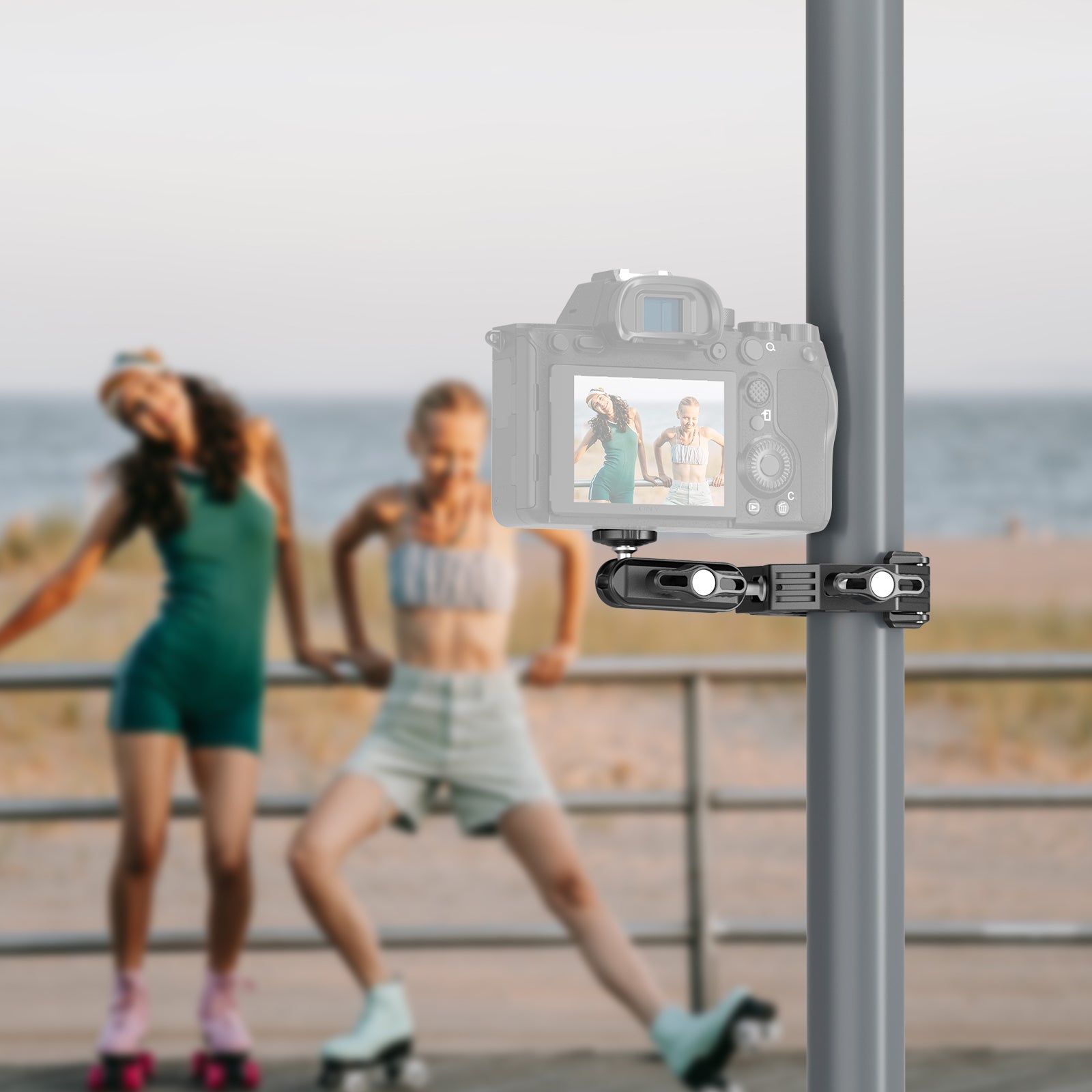- Multiple Mounting Points- With 1/4" threads, ARRI locating points and a built-in cold shoe mount , the super clamp and magic arm can connect numerous accessories like a monitor, shoulder rig, and camera cage. A built-in cold shoe mount for quick mounting of LED fill lights, microphones, and more (not suitable for on-camera speedlite flashes)