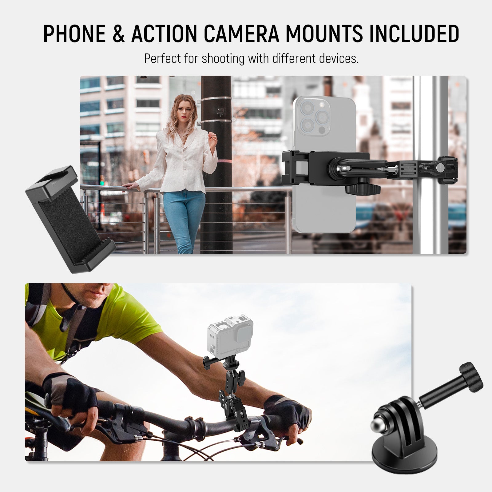 - Camera & Phone Photography- Clamp your smartphone (2.2-3.3"/55-85mm in width) with the phone holder, or mount your action camera with included adapters and attachments. ST83 accessories kit for bike/motorcycle is compatible with iPhone 16 15 Pro Max Plus 14 13 Mini compatible with Samsung Galaxy S22 S23 S24 Ultra compatible with GoPro Hero 12 go pro hero 11 10 9 8 7 Black compatible with DJI Osmo Action 4 3 compatible with Insta360 x3 x4 insta 360 ace pro compatible with mevo start etc.