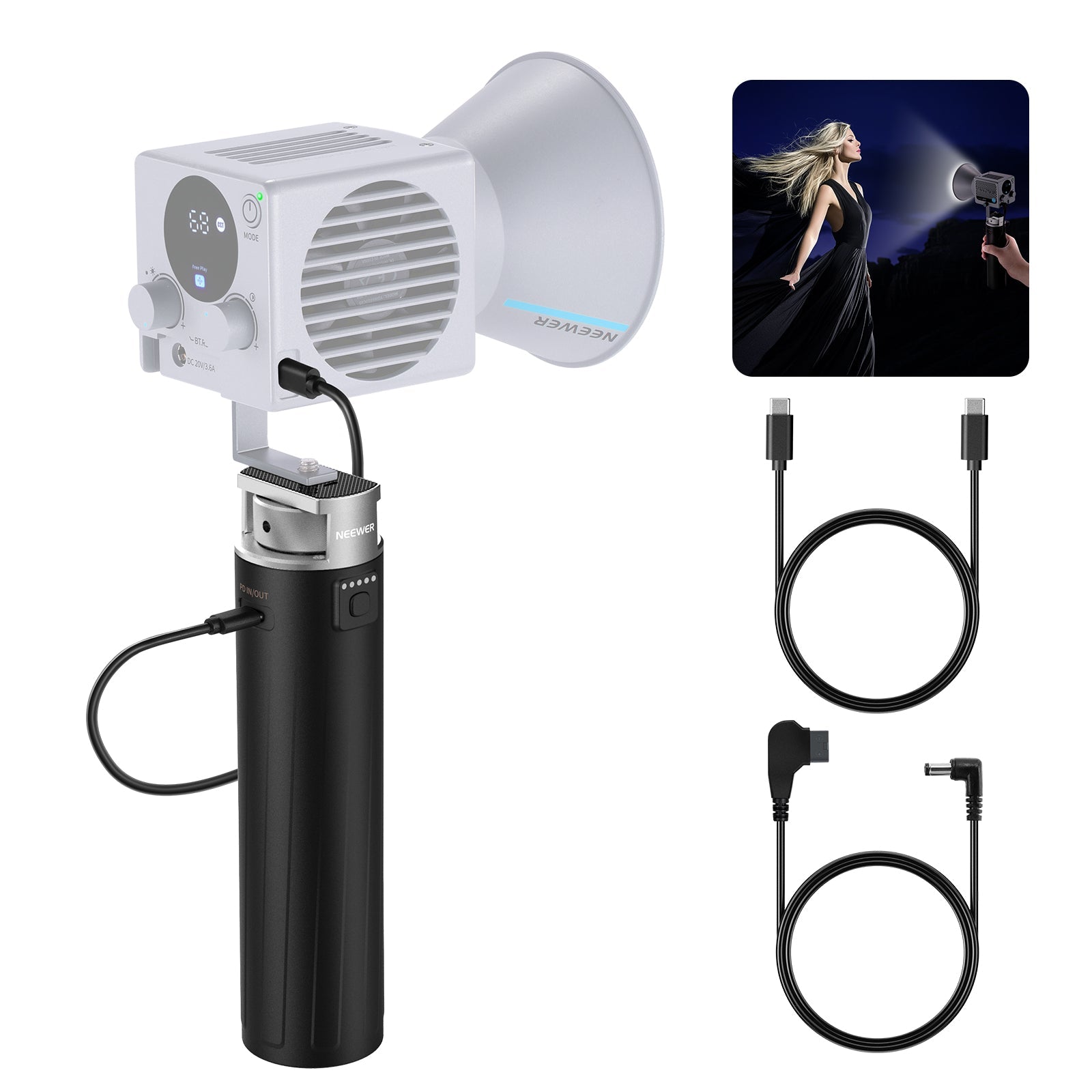 - On The Go Power for Portable COB Lights- This portable handgrip battery is especially suitable for NEEWER HS60B HS60C MS60 MS60B MS60C MS150 MS150B MS150C HB80B HB80C video lights or other compact COB lights, providing a lighter solution for battery powered handheld video lighting. The large capacity of 6800mAh/99Wh ensures a reliable, steady power supply for extended shooting. Powering the 60W HS60B at full capacity for 1.3 hours via USB C or the 68W HS60B for 1.1 hours via D Tap