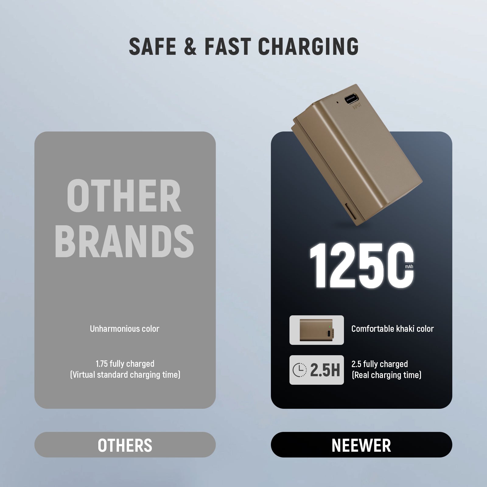- Safe & Fast Battery Charging- Safely charge this 1250mAh battery to 100% in 2.5 hours using a 5V 2A USB wall charger (not included). Note: PD fast charging is not supported