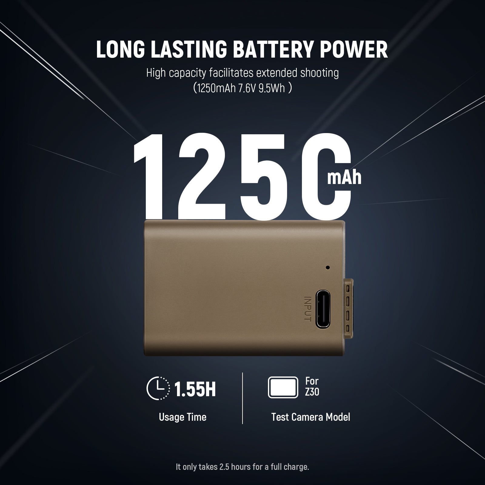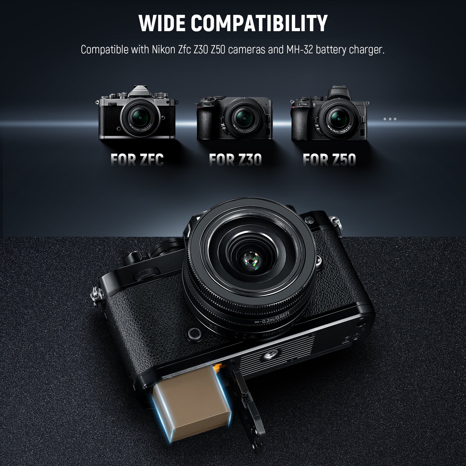 - Replacement Battery for Nikon EN-EL25- This EN-EL25 is fully compatible with Nikon Zfc Z30 Z50 cameras and MH-32 battery charger. Note: Fully discharge the battery before charging it for the first time.