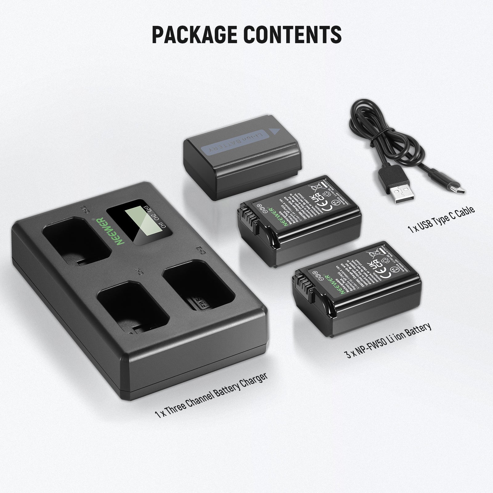 NEEWER NP-FW50 3 Pack Replacement Sony Battery and Charger Set