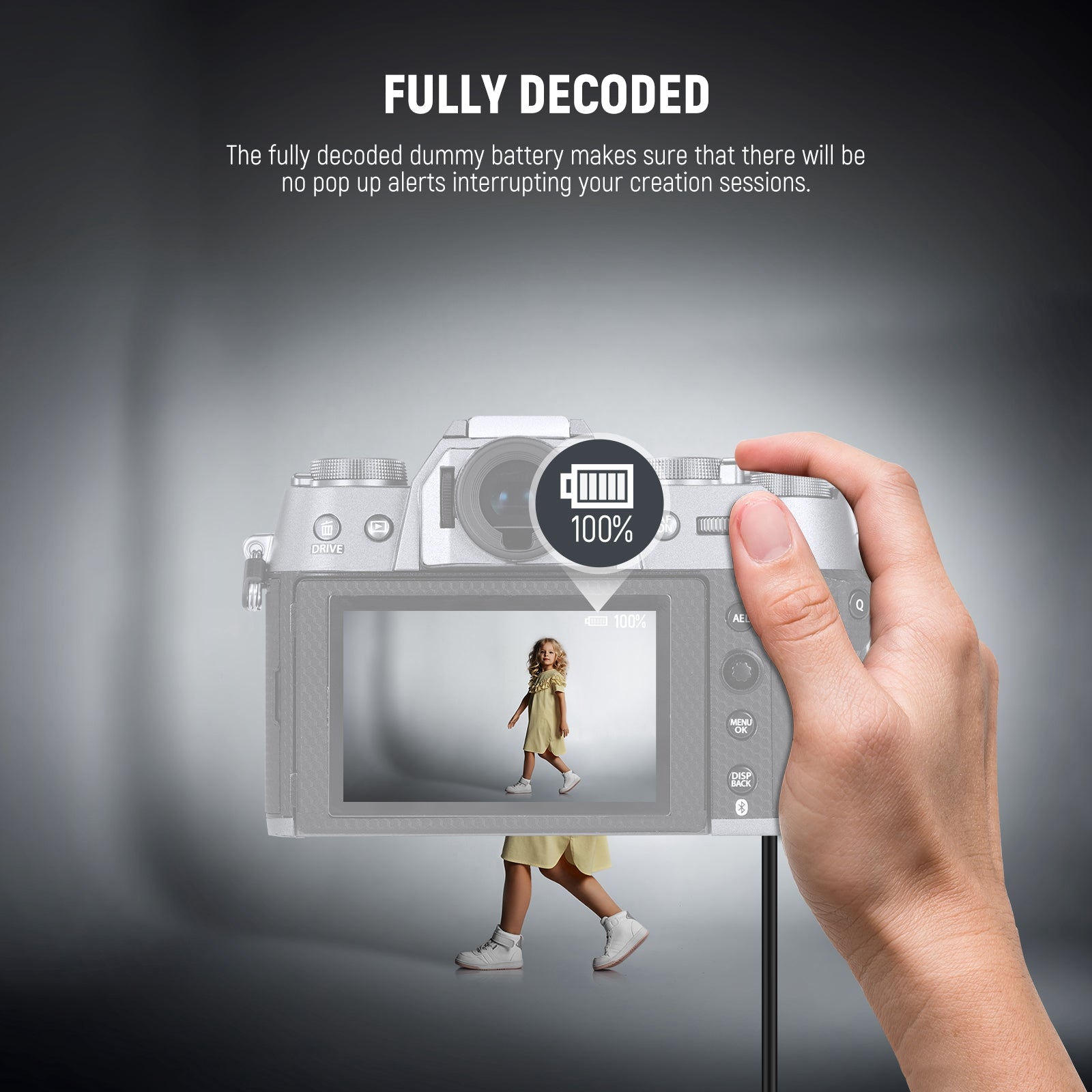 - Compatibility- This dummy battery kit is compatible with FUJIFILM HS30EXR, HS33EXR, HS35EXR, HS50EXR, X-A1, X-A2, X-A3, X-A5, X-A7, X-A10, X-E1, X-E2, X-E2S, X-E3, X-E4, X-H1, X-M1, X-Pro1, X-Pro2, X-Pro3, X-S10, X-T1, X-T2, X-T3, X-T10, X-T20, X-T30, X-T30 II, X-T100, X-T200, X100F, X100V, X100VI cameras