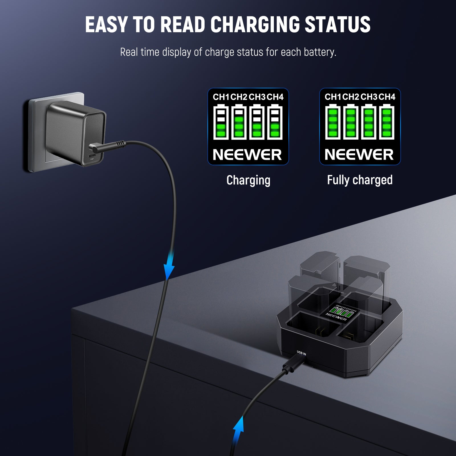 NEEWER NW-Z4 4 Channel Charger 45W PD Fast Charging for NP-FZ100 Battery