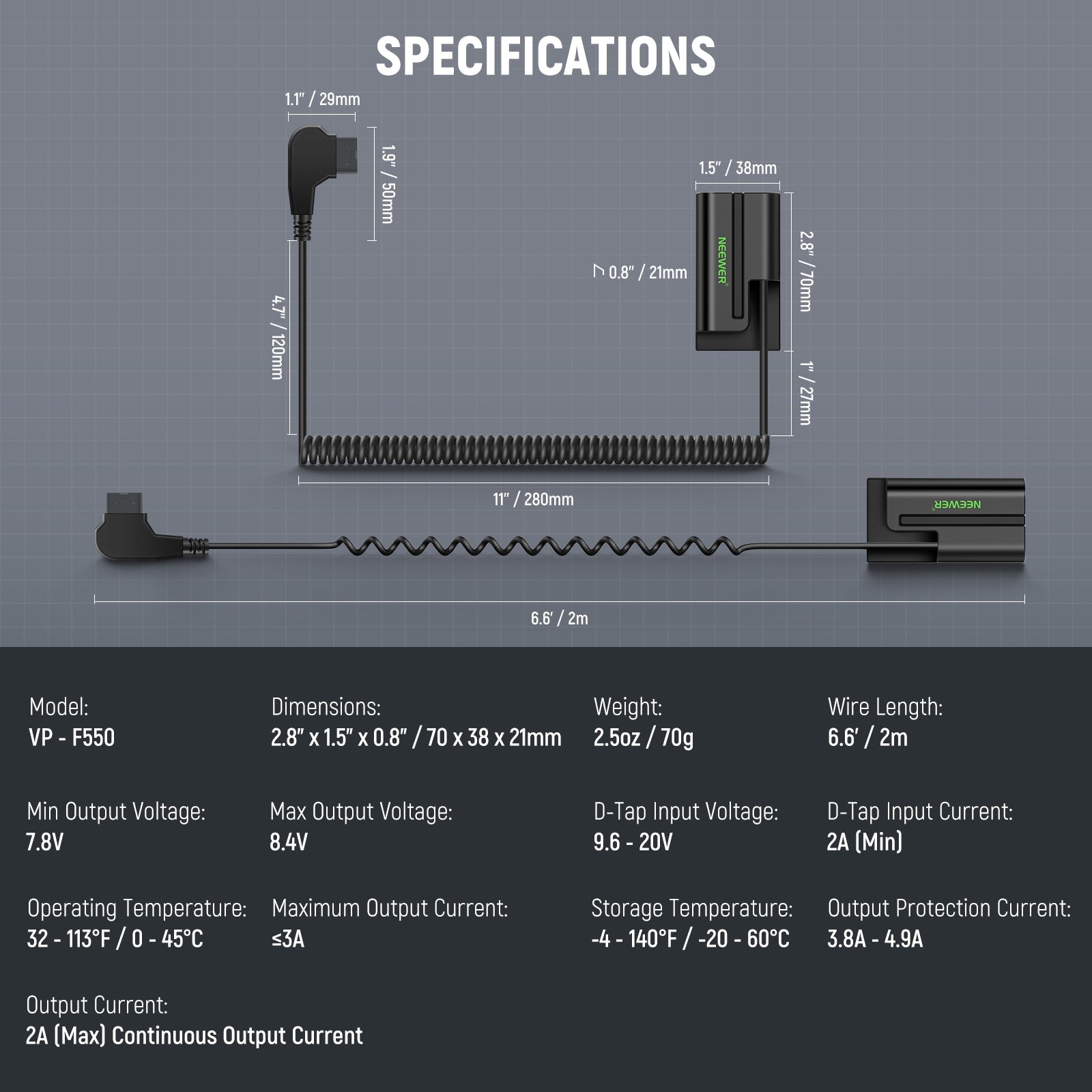 NEEWER VP-F550 NP-F550 to D Tap Dummy Battery