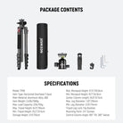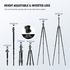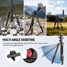 - Multi Angle Adjustments & Quick Release- The center column tilts 180° and rotates 360° via locking knobs, enabling fast transitions between horizontal, vertical, and angled positions for diverse shooting needs. This camera equipment can also be inverted for low angle or macro photography. The 360° ball head includes an Arca type quick release plate for swift mounting and dismounting