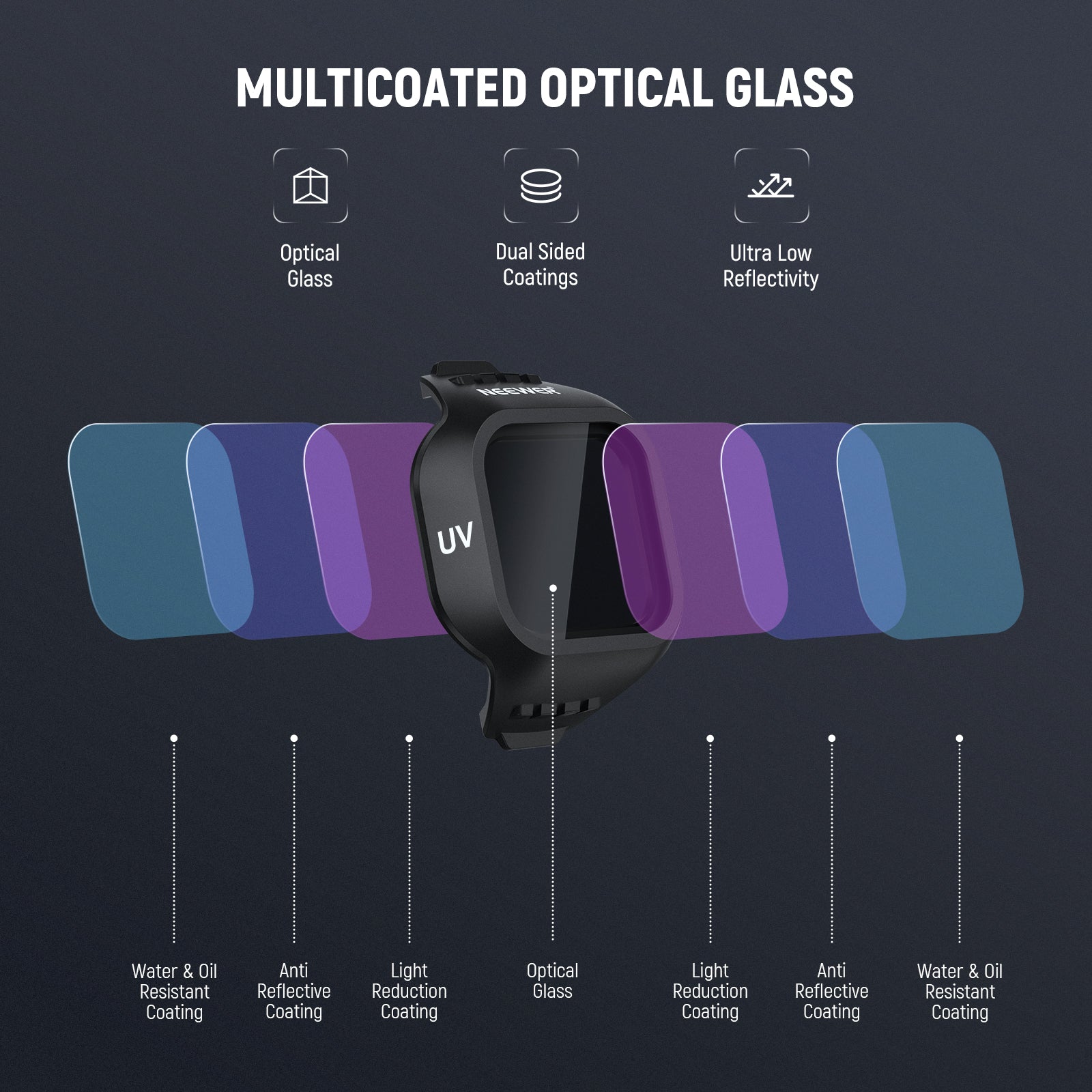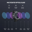 • Multicoated Optical Glass- Optical glass with multilayer, dual-sided coatings ensures clear footage while resisting water, fingerprints, and scratches. A cleaning cloth is included for daily care
