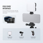 Phone Holder Included- The 2.1"~3.4"/5.4~8.5cm adjustable compact phone holder can be mounted on the portable desk tripod stand top, compatible with iPhone 16 Pro Max Plus 15 14 13 Mini Samsung Galaxy S24 S23 S22 Ultra Huawei Google Pixel 9 8 7 Pro, and more Android cell phones for vertical and horizontal shooting, handheld as selfie stick for content creator vlogging, with one cold shoe for small photography accessories like LED fill lights, microphones, etc.