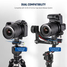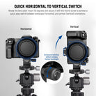 - Quick Horizontal to Vertical Switch- The camera rotating plate rotates the camera lens collar 90 degrees and achieves a quick, easy switch between landscape (horizontal) and portrait (vertical) orientations on a tripod or gimbal stabilizer without adjusting the lens's optical axis. Note: Only supports lens adapter rings with less than 72mm diameter. For safety, please remove the lens before installation/removal