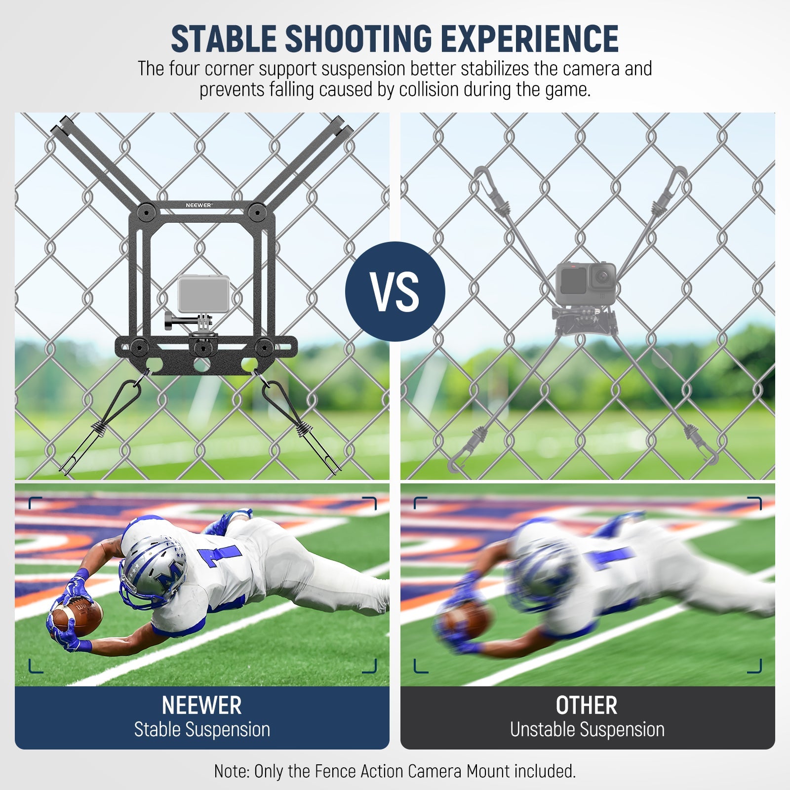 - Stable & Secure Fence Grip- With metal clamps and elastic hooks, the phone fence mount can be easily attached to the fence, ensuring stable and shake free footage even in strong winds or when a ball hits. Besides, the independent knobs of the joints reliably tighten the fence mount after each adjustment, giving you peace of mind during recording sessions