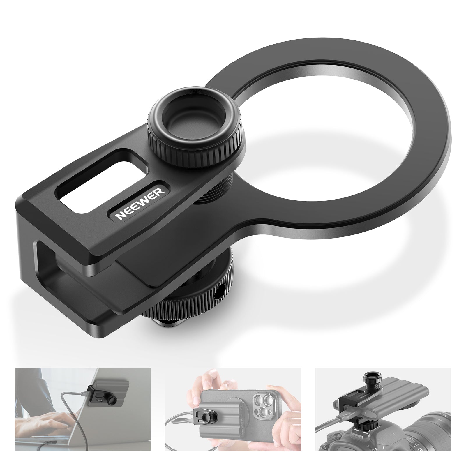 - Cold Shoe/Magnetic Attachment- Mount to camera and phone cages via the detachable cold shoe adapter (compatible with SmallRig camera cages and NEEWER phone cages). Also compatible with MagSafe iPhone 16 and 15 series, it enables secure magnetic attachment for HD ProRes shooting. Note: Please remove the cold shoe adapter when using with phones