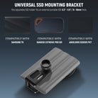 - Universal SSD Mounting Bracket- This adjustable SSD holder fits an external portable SSD 0.3"-0.5"/8-16mm thick. Compatible with Samsung T5/T7/T7 Shield/T9; compatible with SanDisk Extreme Pro 1TB 2TB SSD E30/E61/E81; compatible with G-Technology G-DRIVE Mobile SSD; compatible with Glyph Atom SSD; compatible with Angelbird SSD2go PKT