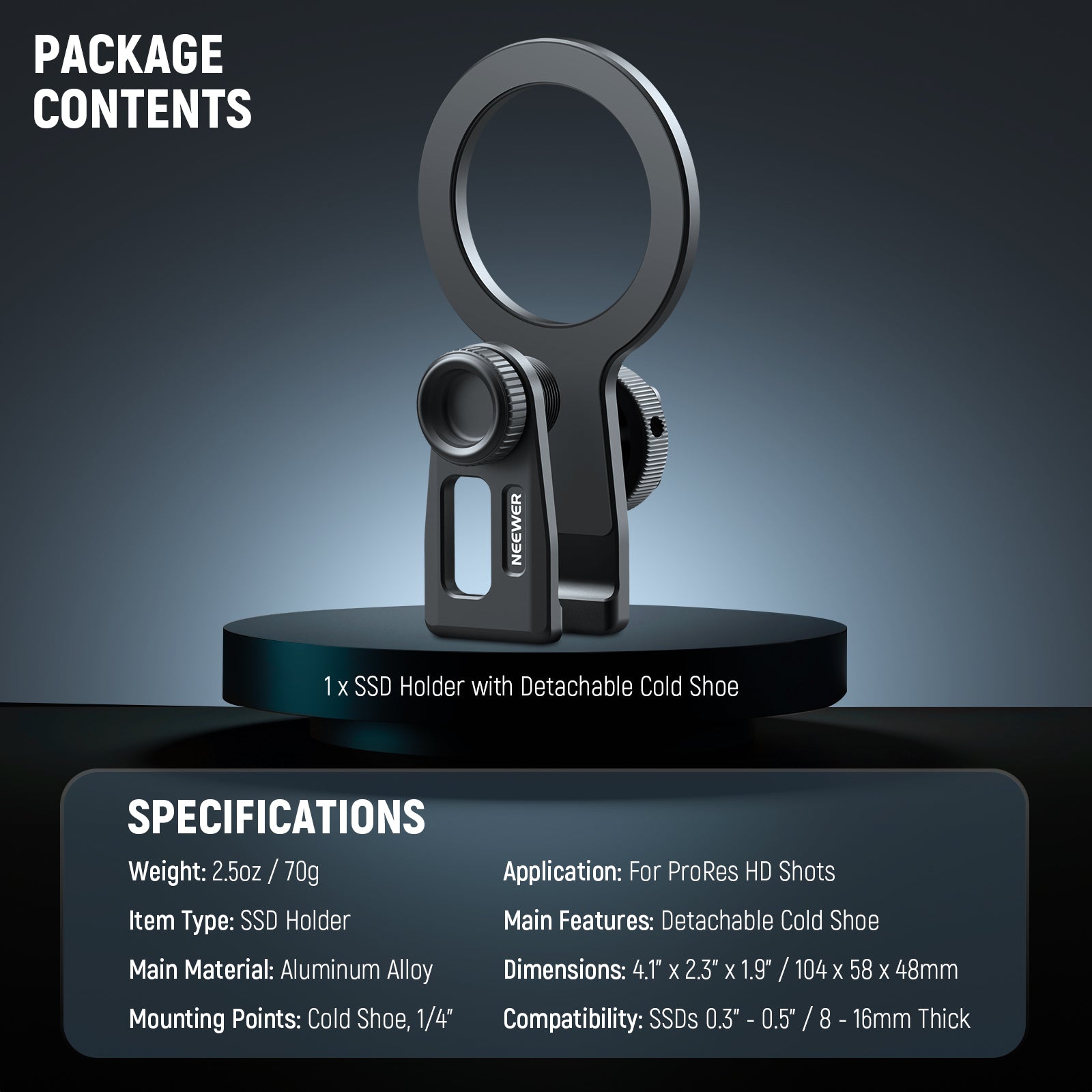 - 1 x SSD Holder with Detachable Cold Shoe