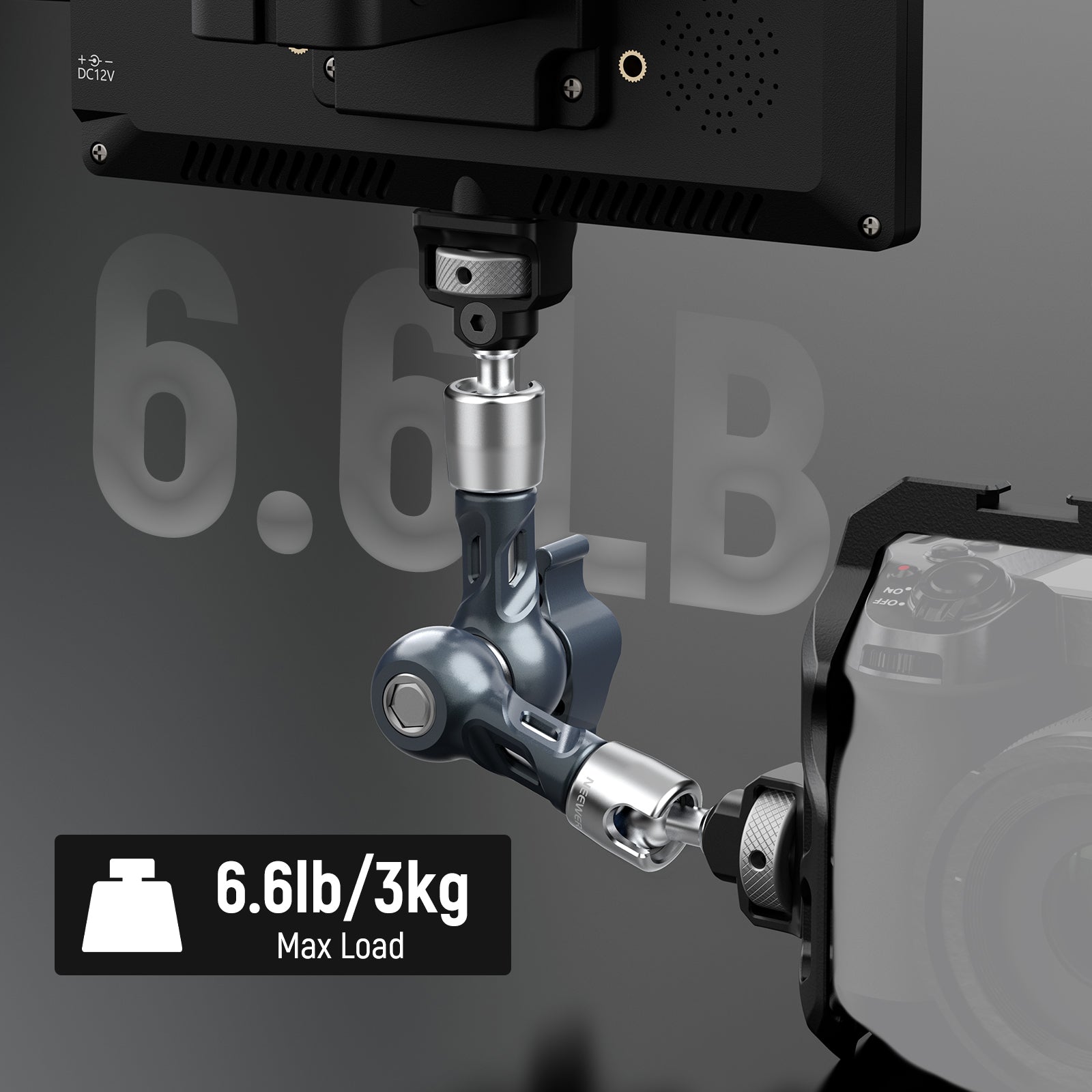 - 1/4" Mounting Options- The 1/4" mounting screws are for mounting DSLR mirrorless cameras, LED video light panels, microphones, field monitors (compatible with Atomos Ninja V), phone holders, action camera adapter accessories, etc. Or directly connect the magic arm to camera cages, tripods, or other rigs using a super clamp (all not included). Ideal as content creator essential and influencer must have photography gear. Max Load 6.6 lb/3 kg