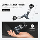 - Stability & Flexibility- Made from aluminum alloy and stainless steel, the 7"/18cm rosette camera magic arm features two articulating arms connected by a 360° friction gear joint. The joint adopts an advanced serrated interlocking design with thrust ball bearings, ensuring secure positioning while allowing smooth adjustments. The enlarged ergonomic lever enables rapid locking of arms within one second, saving both time and effort