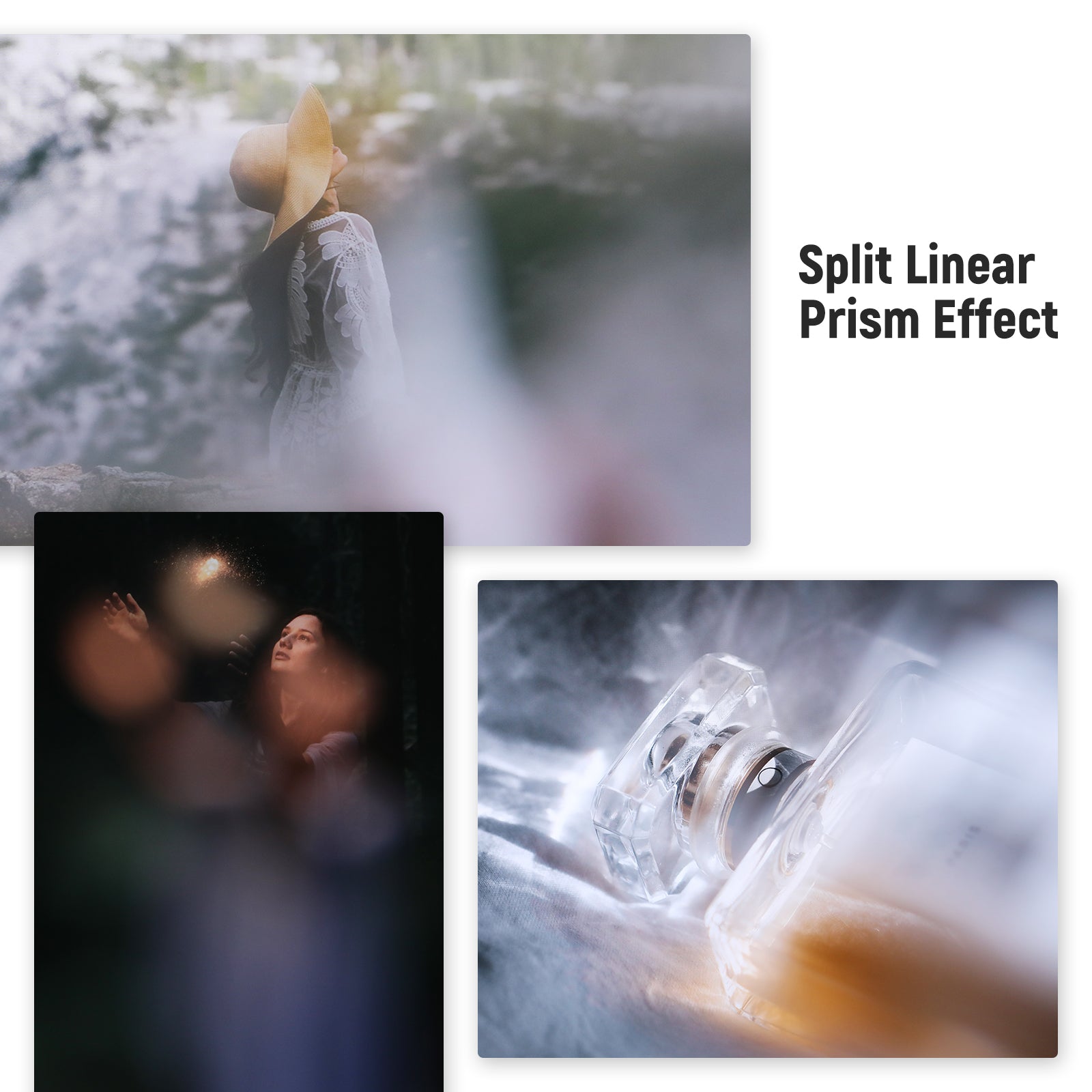 - Half Domed Split Diopter Effect Filter- Capture distinctive split focus, expand depth of field, and highlight specific elements in your film photography shots using this handheld split diopter prism special effect filter. This specialized camera lens filter creates an impressive foreground blur effect for stunning visual impact