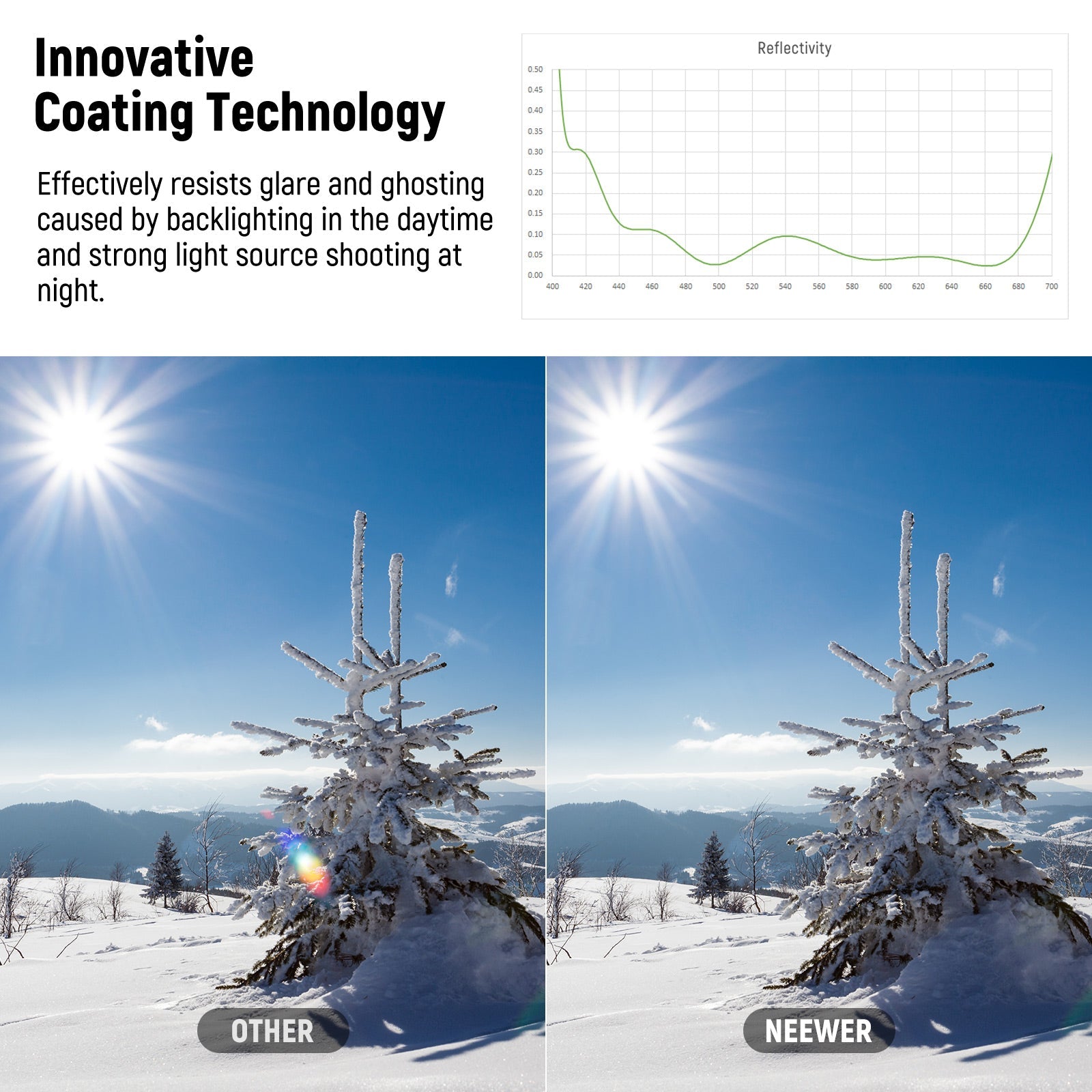 • Lens Protection and Lifelike Color- NEEWER Ultra Low Reflectivity UV Lens Filter protects your lens from dust, scratches, fingerprints, and bumps. Crafted with innovative coating technology, it effectively resists glare and ghosting caused by backlighting in the daytime and strong light source shooting at night, to capture images and footage with stunning clarity and true to life colors