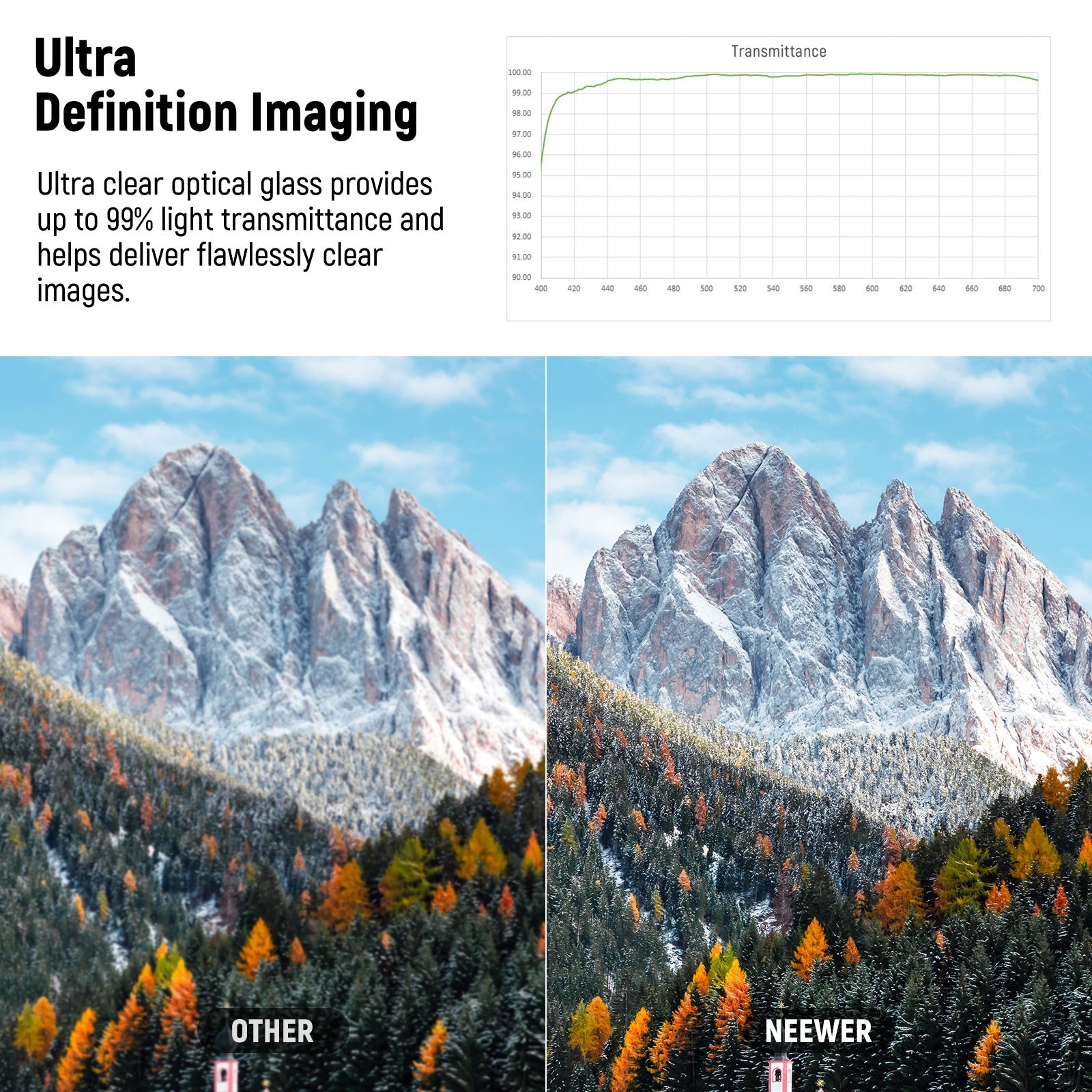 • 99% High Transmittance & 0.1% Ultra Low Reflectivity- This camera lens UV filter with premium ultra clear optical glass provides up to 99% light transmittance and low to 0.1% reflectivity, improving the contrast and sharpness of the shots