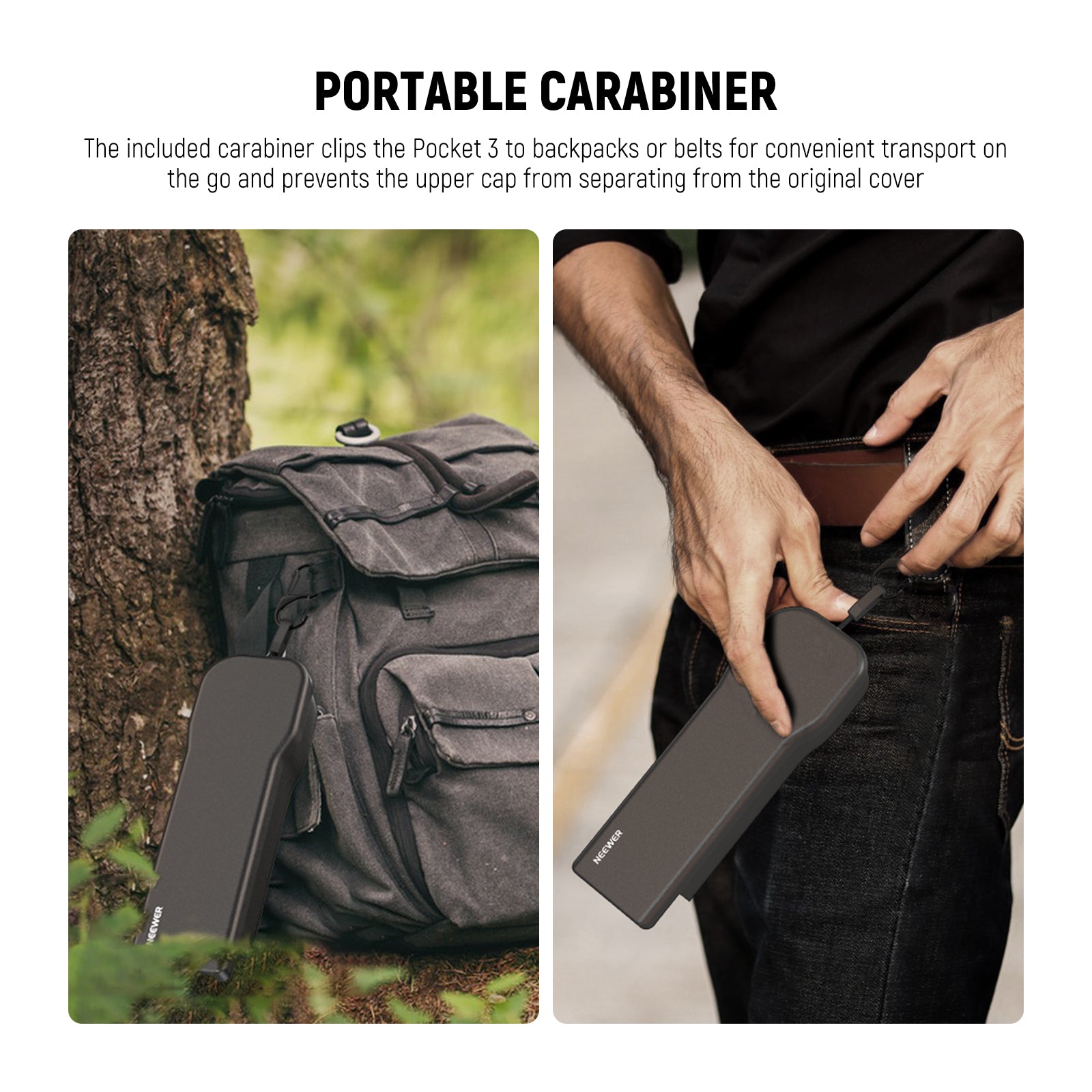 • Portable Carabiner- The included carabiner clips the Pocket 3 to backpacks or belts for convenient transport on the go and prevents the upper cap from separating from the original cover