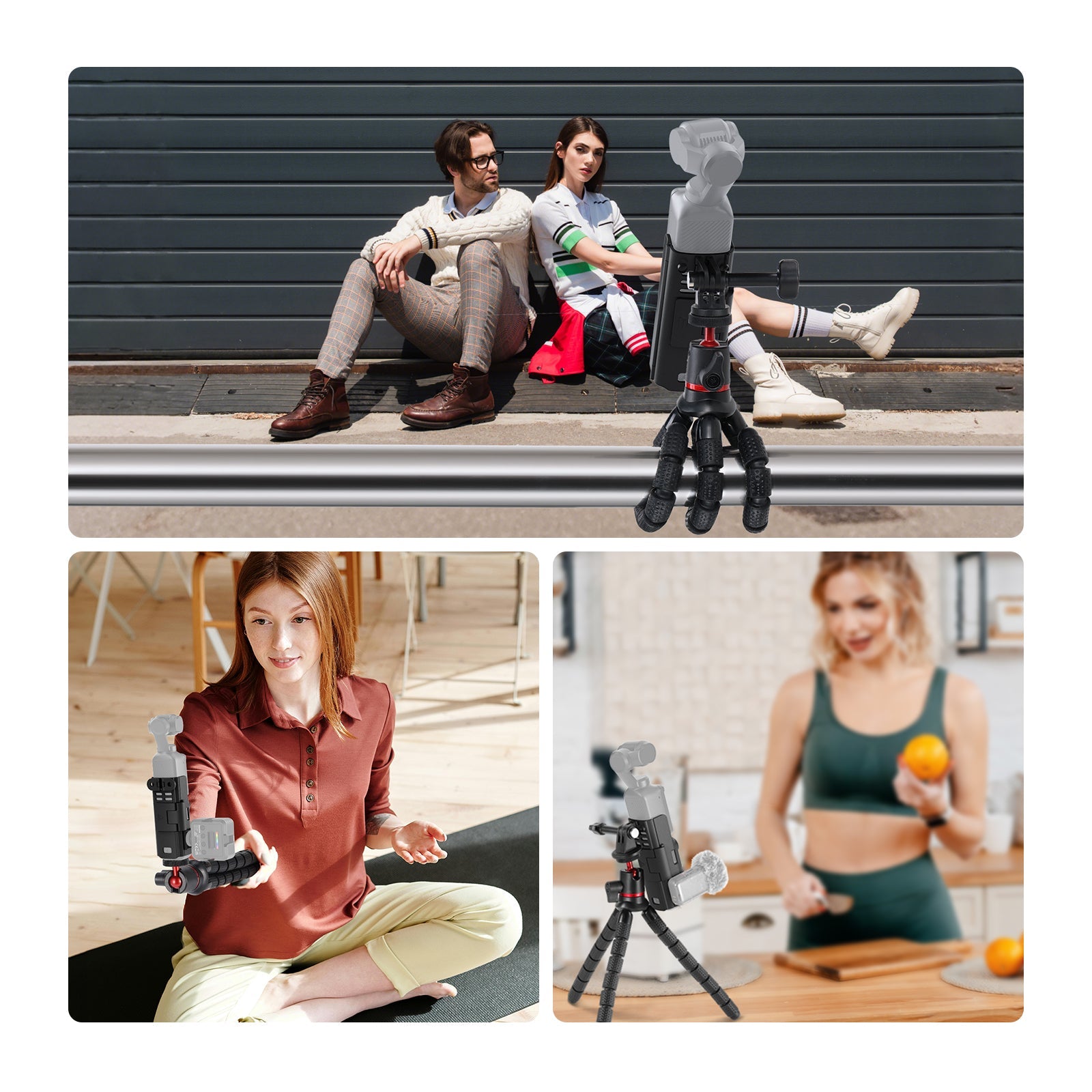 - Mountaineering Kit for Pocket- NEEWER GP-66 gimbal camera case mount accessories kit includes an extension adapter mount compatible with DJI Osmo Pocket 3 and its Creator Combo, a flexible mini tripod, an adapter bracket, and a T shaped bolt. A lightweight and portable kit that lets you effortlessly hold your Pocket 3 for YouTube vlogging, smooth video recording, selfies, and action packed vlogs during outdoor adventures like trekking and hiking