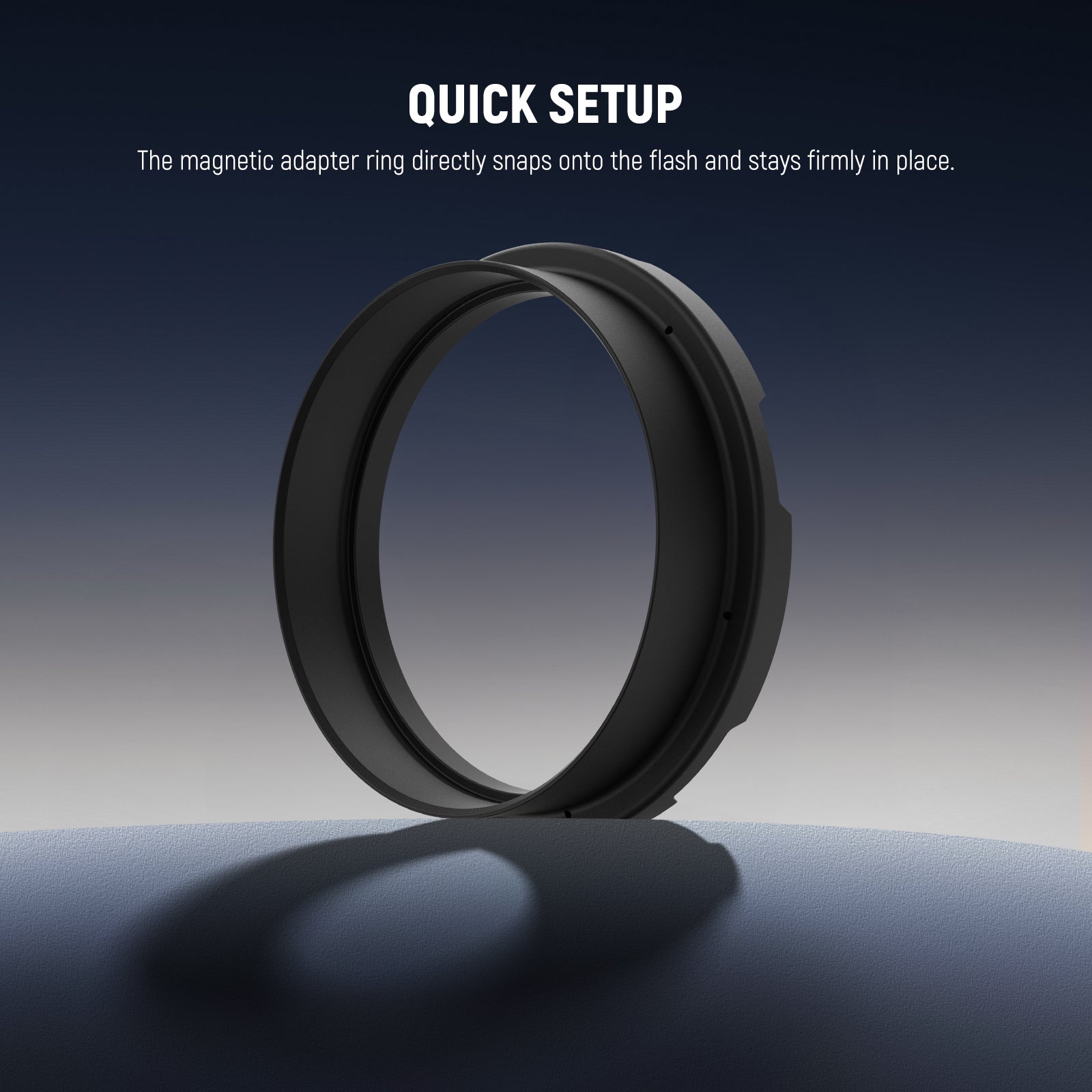 - Round Magnetic Adapter Ring- The round magnetic adapter ring can directly snap onto the Q4&Q6 flash and stay firmly in place during photoshoots