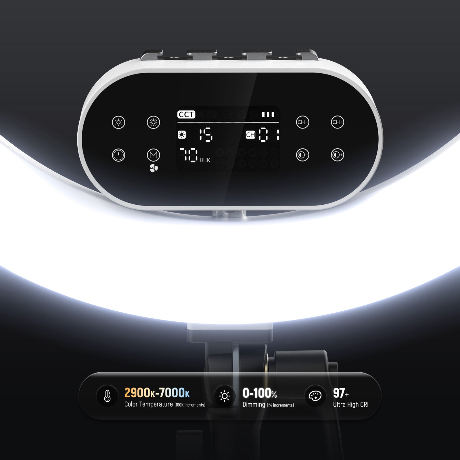 - CCT & FX Scene Effect Modes- The CCT mode provides a 2900K-7000K adjustable range for warm to cool tones, along with 0-100% dimming to suit various lighting needs and CRI97+ a high color accuracy. The flexible lighting adjustment can flatter all skin tones, brighten your face, and minimize blemishes. The FX Mode brings 12 realistic scene effects for professional video shooting. Use the wired controller to quickly get the effects you want