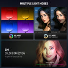 - Brilliant RGB Film Lighting with 17 Scenes- There are 3 light modes. CCT Mode offers 2700K-6500K bi color lighting, a 0-100% dimming range, and -50/+50 GM correction. HSI Mode offers 36000 colors mixed by 0-360° hue angles and 0-100% saturation. FX Mode offers 17 preset special scene effects that will make your video creation more realistic