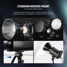 - Solid Metal Shell with Bowens Mount- Made of premium aluminum alloy, the shell is durable and robust. The Bowens mount and umbrella socket can connect softboxes, beauty dishes, snoots, and photography umbrellas for achieving various light effects effortlessly. The stand mount adapter enables 360° angle adjustment, and the standard reflector can protect LEDs from damage