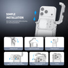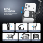 - 1 Click Installation & Full Access - Opened and locked via the side button, the phone cage needs no assembly and maintains full access to the camera, port, and buttons. A detachable rubber ensures seamless use of the Camera Control, and the hollow design is fully compatible with MagSafe wireless charging and magnetic accessories