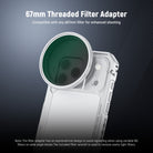 - 67mm Filter Adapter Ring - Connects 67mm UV, CPL, ND filters and black diffusion, graduated color, star, blue streak, light pollution reduction, and other effect filters for creative photos and videos without unwanted vignetting (filters sold separately). Ideal as content creator essential, video movie maker, and influencer must have photography, videography, filming equipment
