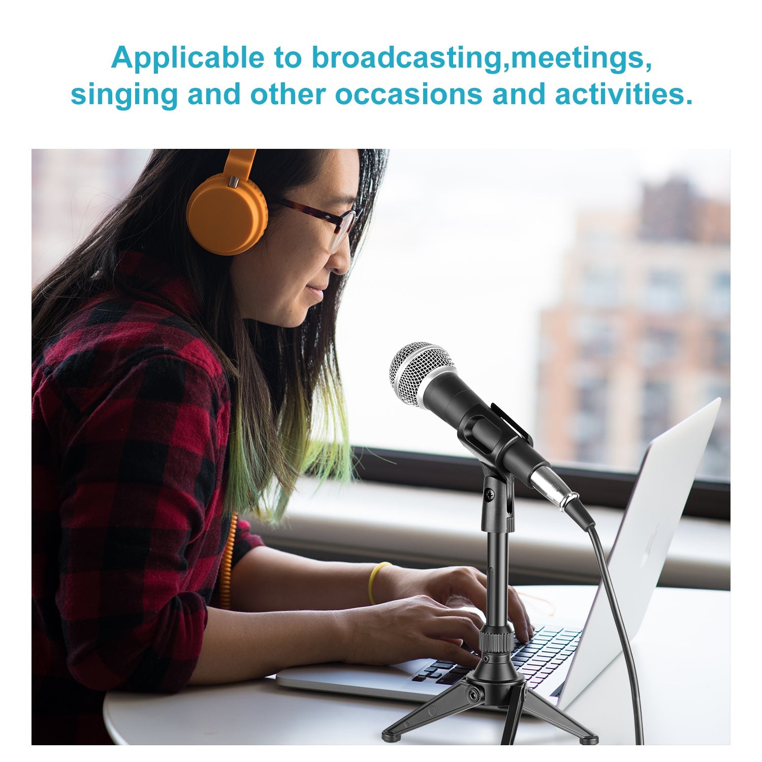 - This mini support stand is designed with a tabletop compact construction for supporting the microphone.