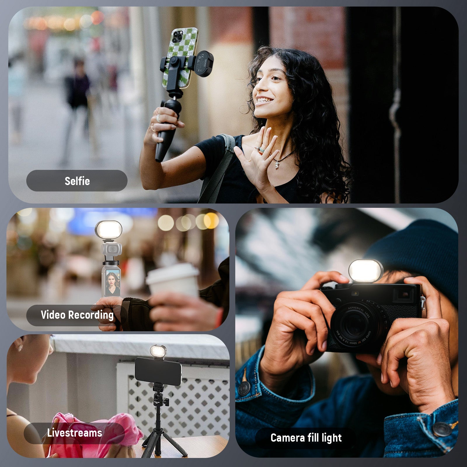 • Mini Camera Video Light- Measuring only 1.97"x1.38"x0.55"/5x3.5x1.4cm and weighing just 0.71oz/20g, this panel light attachment won't weigh down your camera, providing soft, flattering lighting to enhance your on camera appearance. Compact enough to slip into a pocket for easy carrying, it's portable equipment for travel films, on the go vlogs, selfie photos, photography, video recording, studio photoshoot, key light for YouTube TikTok social media short filming, streaming, makeup, and more