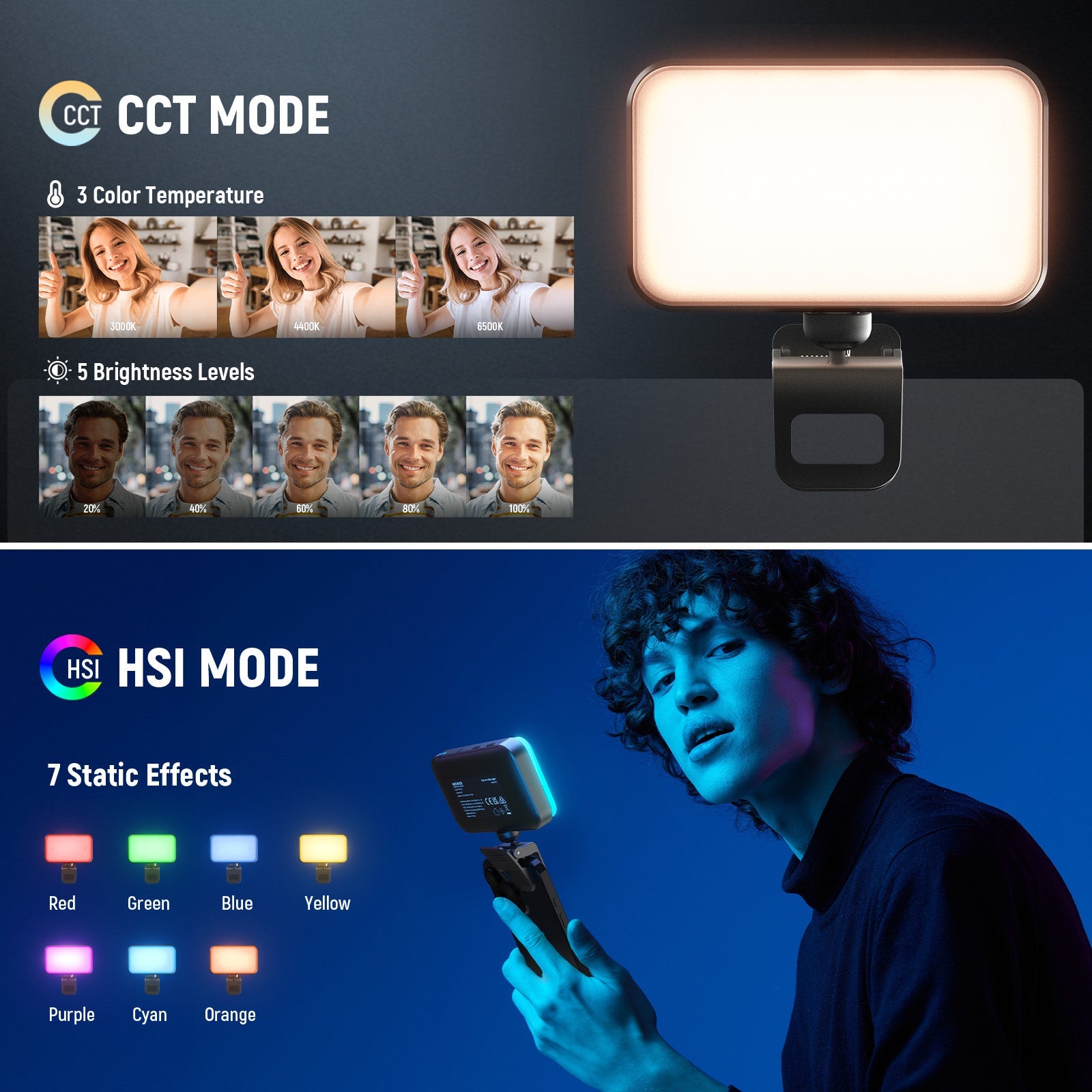 - Versatile Photography Lighting Kit- Includes 1 x RGB selfie light, 1 x mounting clip, and 1 x USB A to USB C charging cable. This LED light brightens up your skin and make you look better on camera, whether you are attending a Zoom meeting, live streaming on social media, filming a vlog for your YouTube/TikTok channel, making podcast videography as a content creator, or simply looking for a makeup light as a makeup artist
