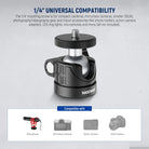 - Multiple Mounting Options- The bottom 1/4" thread allows this ball head easy mounting of desktop tripods, monopods, selfie sticks, magic arms, handgrips, and sliders for versatile content creation