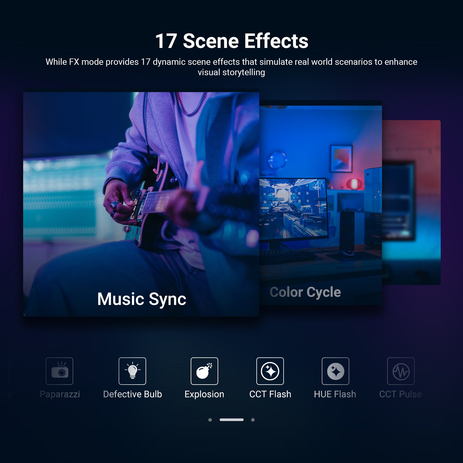 - Lighting Modes: CCT/HSI/FX