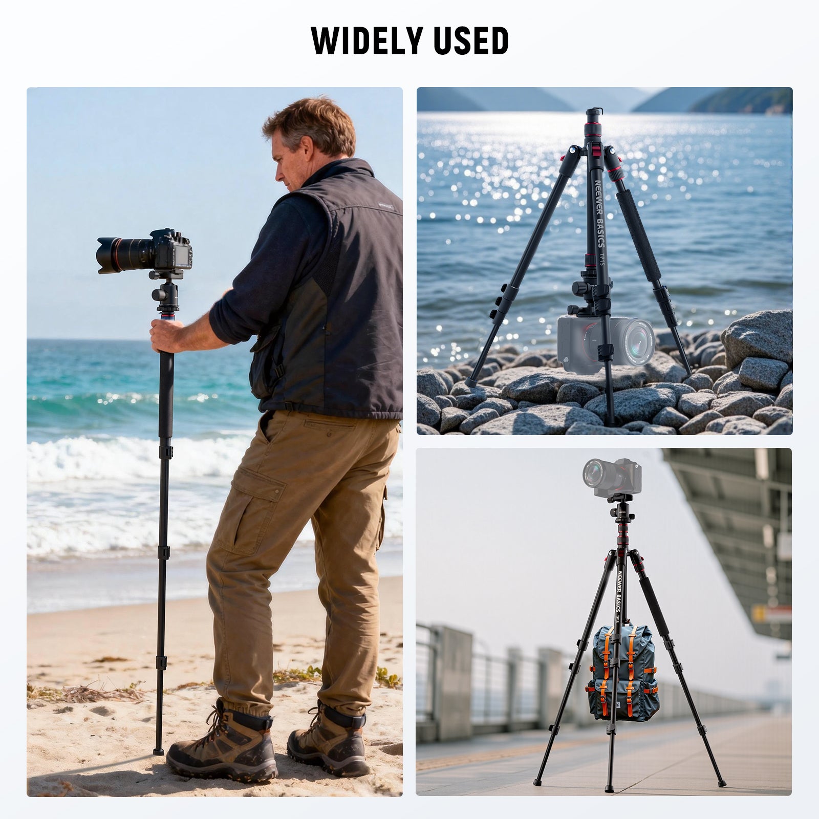 - Transform into a Monopod- One of the tripod leg tubes can be quickly disassembled and connected with the central axis to transform into a monopod, great for capturing quick, moving situations, versatile as a trekking pole during your hikes. The height of the monopod is adjustable from 31.5"/80 cm to 74.4"/189 cm. Ideal tri pod stand with phone holder attachment compatible with iPhone for content creator essential photography videography accessories, influencer must have camera creation gear