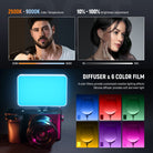 - Soft Diffuser & 6 Color Films- The silicone light diffuser softens light efficiently, providing a gentle and even glow that reduces harsh shadows and glare. The 6 color films (green, blue, purple, light purple, red, and orange) offer customizable creative lighting effects to match your aesthetic preferences, adding a dynamic touch to your content creation. The color films are easy to install and switch by simply inserting them into the diffuser and then slipping the diffuser onto the light