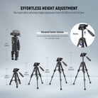- Effortless Height Adjustment- The tripod offers effortless height adjustment with its versatile design. The 3 section legs can be easily adjusted from 9.8"/25cm to 18.9"/48cm using flip locks, while the center column can be additionally elevated up to 3.2"/8cm. With an overall height range of 12.6"~24.2"/32~61.5cm, this tripod provides flexibility for capturing the perfect shot in any situation