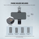- Phone Holder Included- The 2.3"-4.1"/5.8-10.3cm widened phone holder is compatible with iPhone 16 15 14 13 Pro Max Plus Samsung Galaxy S24 S23 S22 Ultra Huawei Google Pixel 9 8 7 Pro and more smartphone models, ideal for selfies, photography, vlogging, video recording, live streaming, etc.