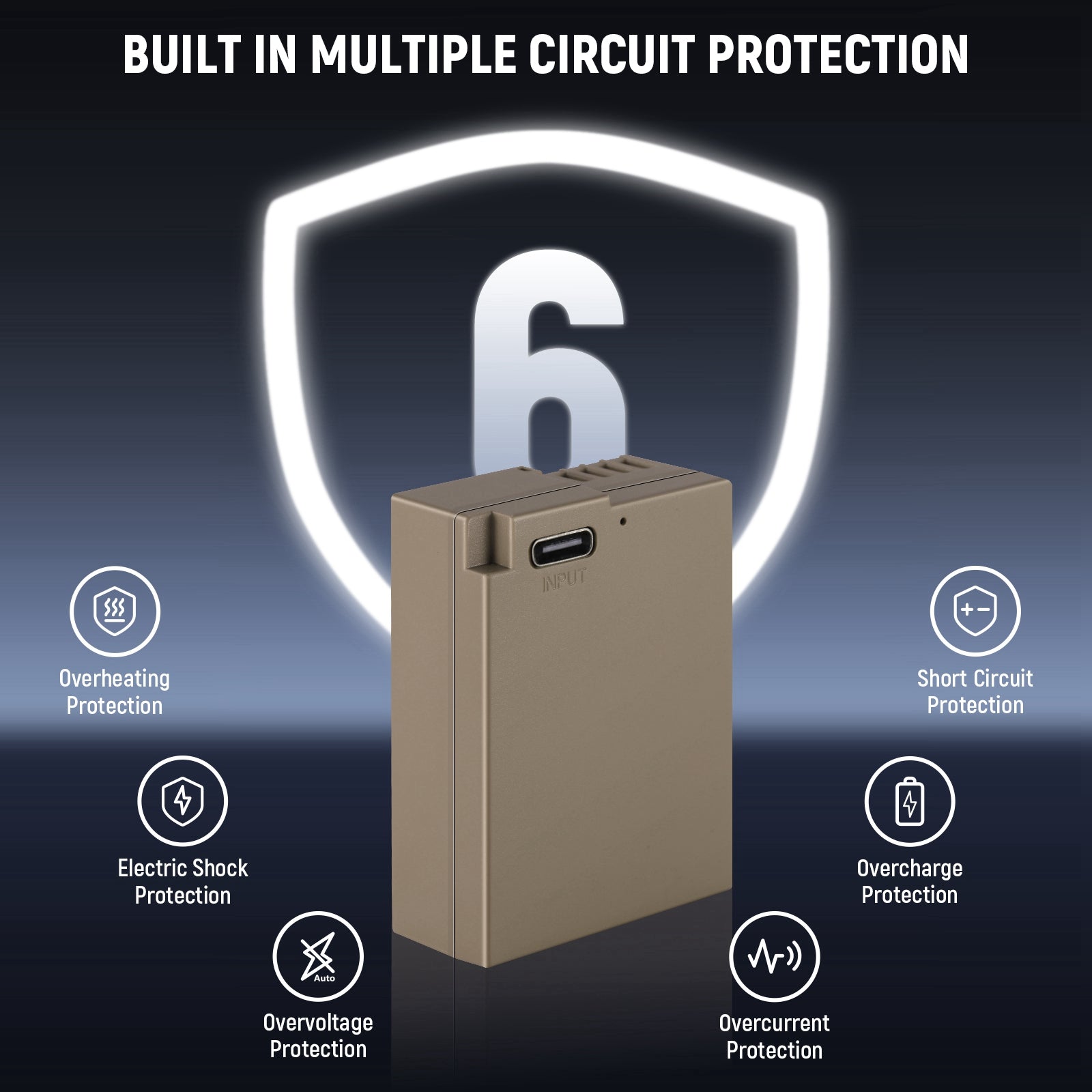 - High Battery Capacity- The battery pack has 1100mAh (7.2V/7.9Wh) capacity and can be fully charged in 2.3 hours with a normal 5V 2A USB power adapter. Note: PD fast charging is NOT supported