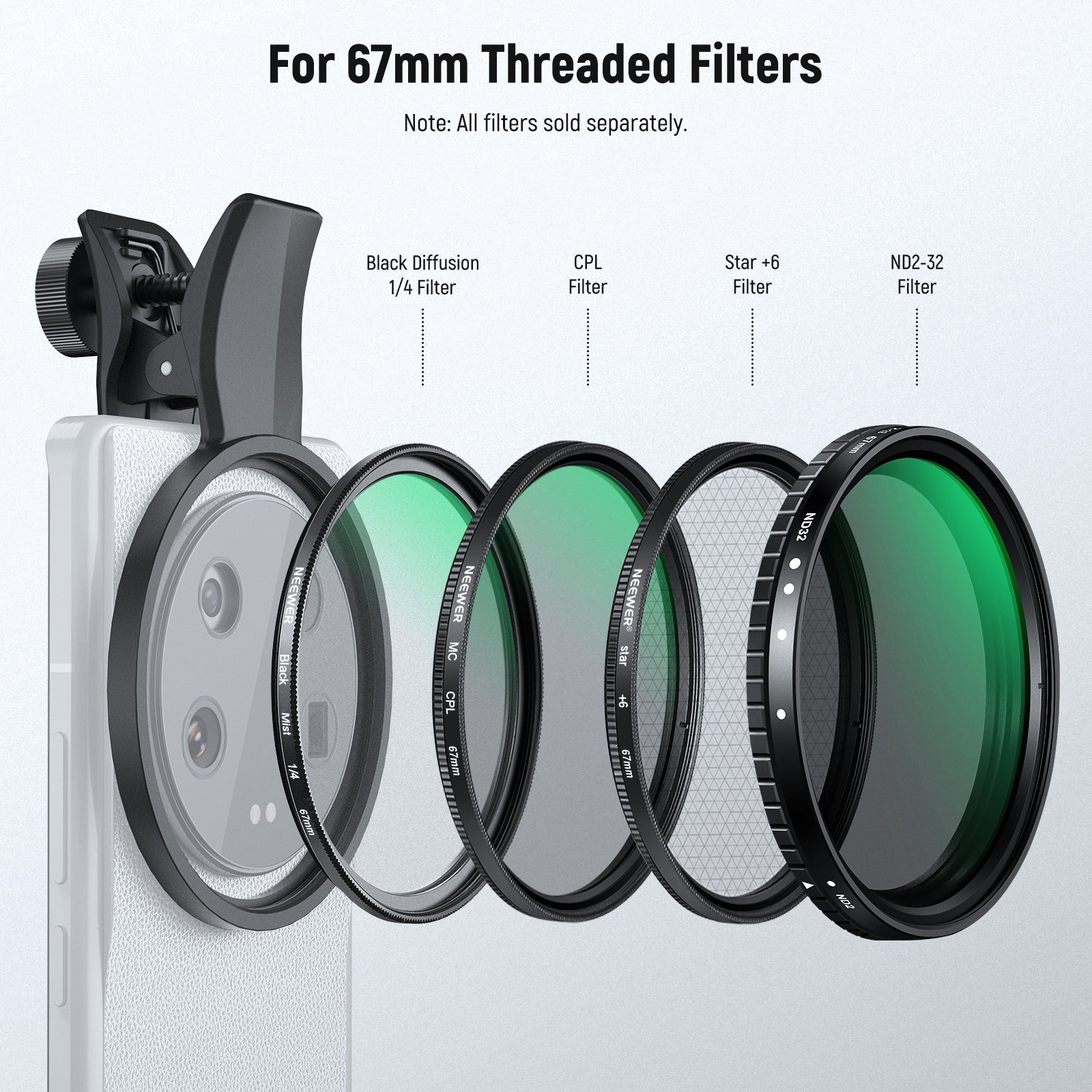 NEEWER phone lenses are useful for enhancing your smartphone camera and elevating your mobile photography. Our collection includes a variety of lenses, such as macro, telephoto, microscope, and fisheye lenses. These lenses are perfect for street, landscape, architecture, and group photography. Choose high-quality phone camera lenses to capture stunning photos.