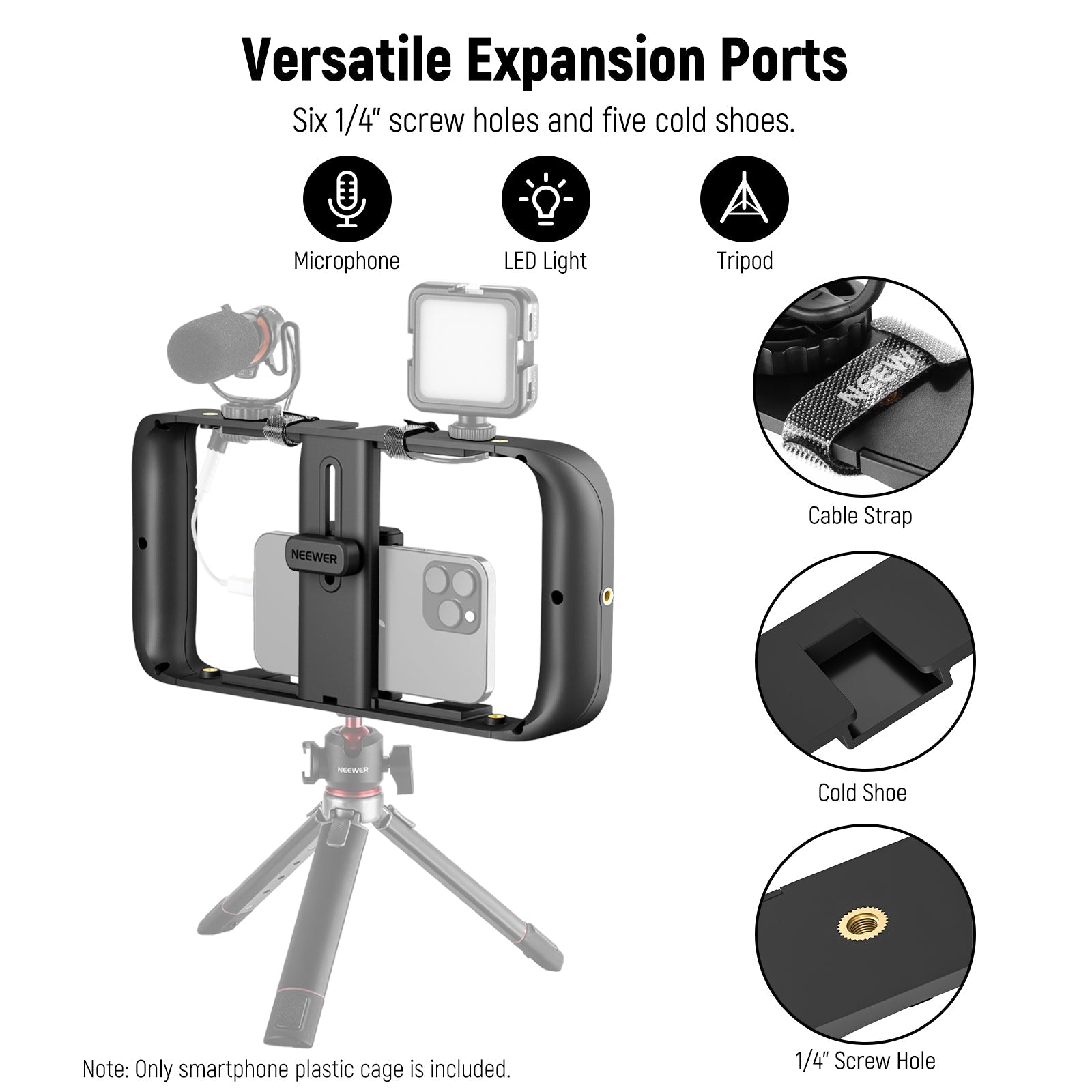 NEEWER phone rigs are designed to enhance your mobile videography. Our collection includes phone tripod mounts, phone cages, smartphone gimbals, and more. Compatible with a wide range of phones, including iPhone, Samsung, and other brands, you can easily find the phone rig that best suits your needs.