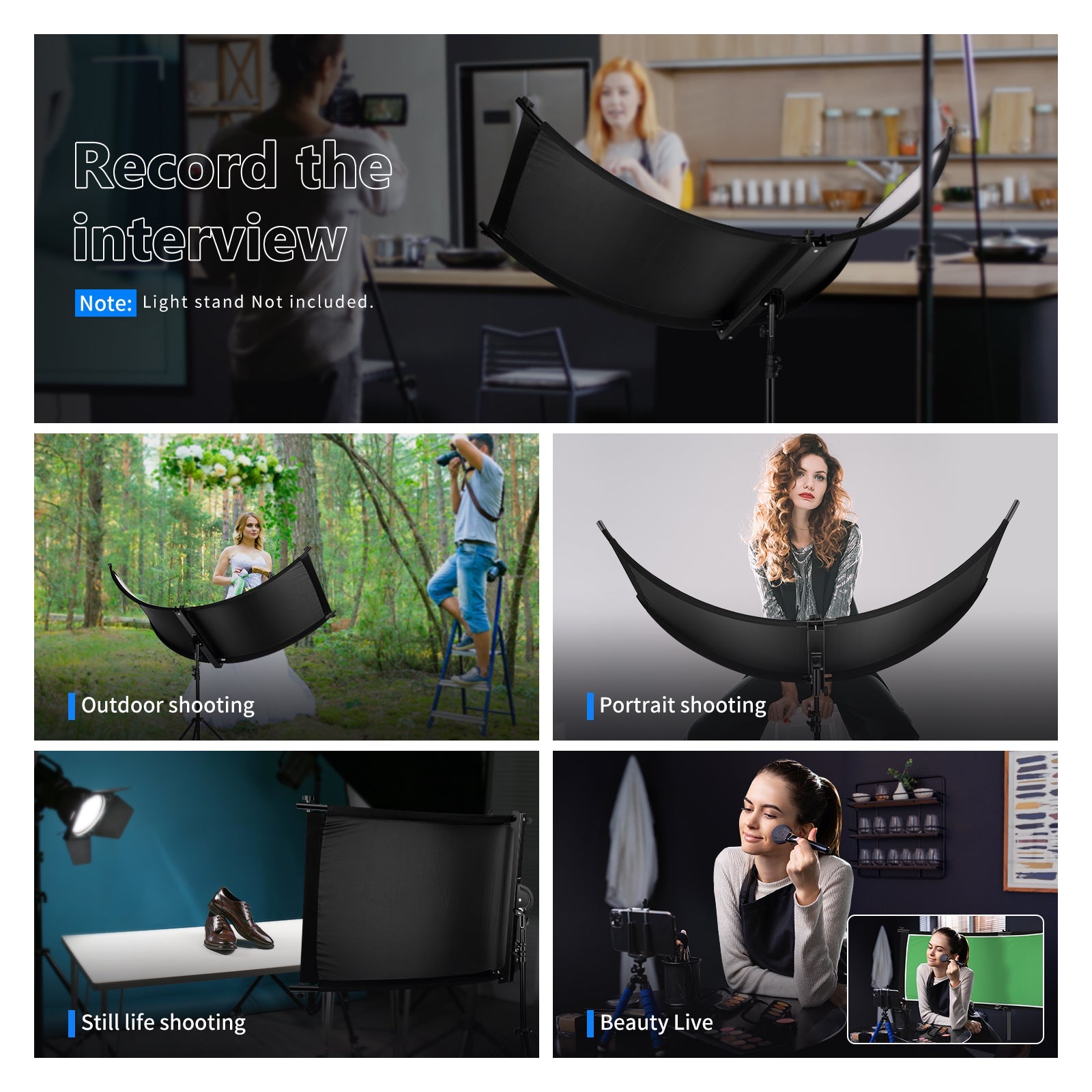 • Make the Eyes Pop- Neewer Clamshell Reflector imitates the curvature of human eyes and bounces crescent catchlights to make the eyes sparkle in portrait photography. The light seamlessly reflected from three perspectives can eliminate shadows, and the fabric is suited for strobes, monolights, LED lights, and even natural sunlight