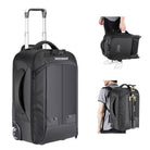 - Rolling Camera Backpack- This 2-in-1 rolling camera backpack can keep your camera gears protected and organized while remaining portable as a carry-on suitcase. It measures 22” × 14” × 10” (55 × 35 × 26cm) and fits most airline overhead bins