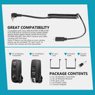 - Wireless Control Shutter Release: Turn the Function Switch to "Cameras" mode on the transmitter and receiver. When the camera is powered off, connect the receiver and the camera through the S2 shutter cable. Press the trigger button to control the camera's shutter speed.