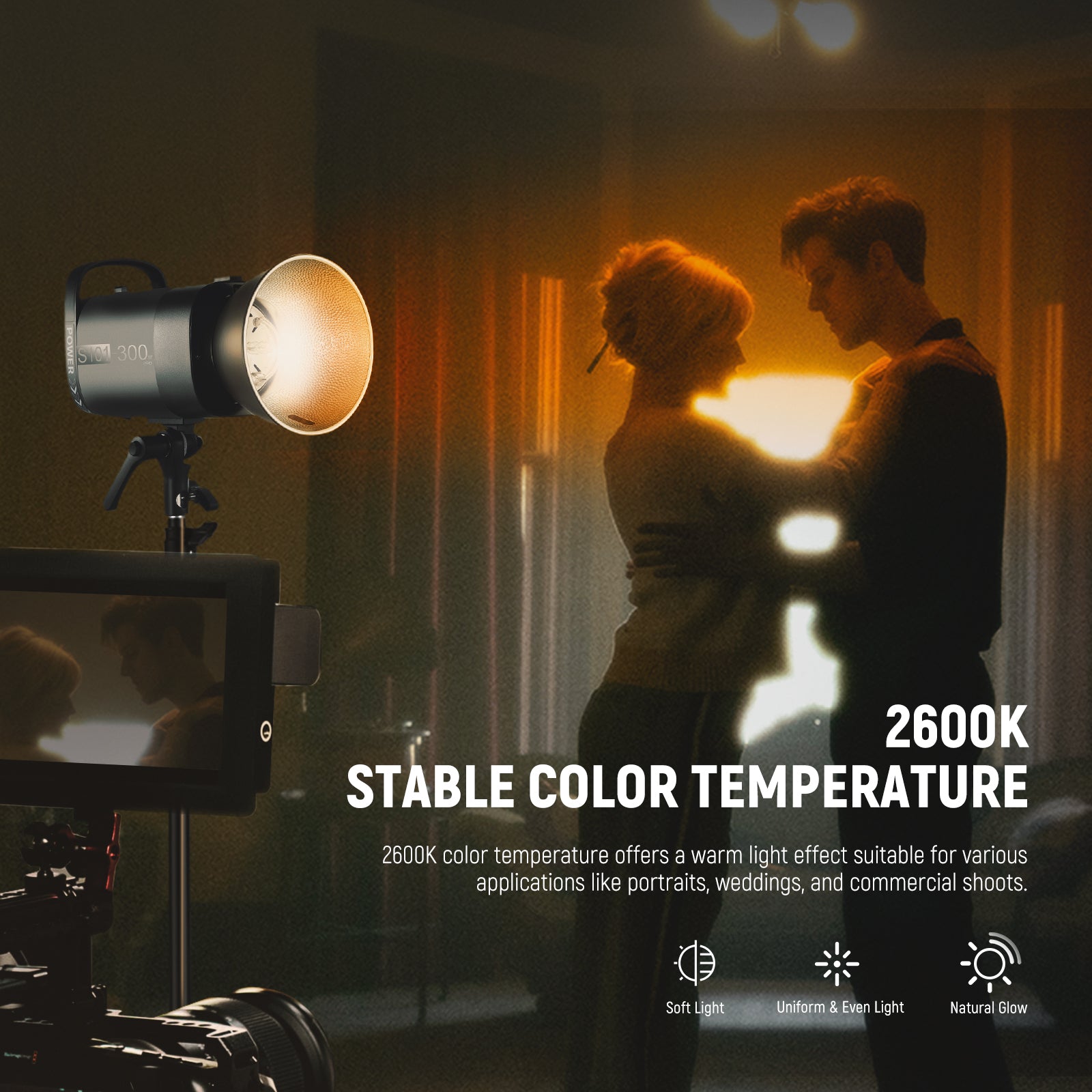 - 2600K Stable Color Temperature- 2600K color temperature offers a warm light effect suitable for various applications like portraits, weddings, and commercial shoots